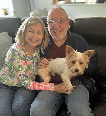 A Merlin Oh my gosh, oh my gosh, oh my gosh!!! When I got up this morning I could tell something different was going to happen. Mom and my bro Sammy and sis Sophie were very focused on me. They were happy and sad at the same time, but mostly happy. I had a nice long walks with both of them, had a snack and then took a nap. After awhile I did a super stretch, which I am quite good at, and mom said hey let's go for a walk. Sophie and I jumped at the chance. When we were coming back to the house a new car was in the driveway. New people = lots of opportunities for tummy rubs and attention. So of course I turned on my charm, ran up to them, gave them sniffs and kisses and completely let them know that I was the best looking and sweetest dog ever. Anyhow, I digress. We all went inside but Sophie and Sammy hung out in moms room so I had the new lady, Karen, and her husband Geoff, all to myself. They are sooooo nice. Lots of kisses from them, tummy rubs and undivided attention. They brought me a new leash and a new harness that matched. Quite spiffy let me tell you!!! Mom took a picture of me with Karen and Geoff and then I got to go outside and hop into their car. Get this, a new, yes new car seat just for me. They are soooo nice and happy and mom says I get to go live with them. This is awesome. I used to live in a small crate with 2 other dogs crammed in. I had fleas and terrible sores on my man parts from wet belly bands, and not very tasty food. The fleas are gone, thanks mom. I have a house to myself and a beautiful yard, tasty & nutritious food and people who think I am the most amazing pup ever. Yes, they have impeccable taste. Last but not least, Thank You Save a Yorkie Rescue. You saved me and ensured a furever home where I will thrive and not just survive. This never would have happened if you did not intervene. I love you all. Merlin Congratulations Merlin!!! Click a letter to find an animal or view all.